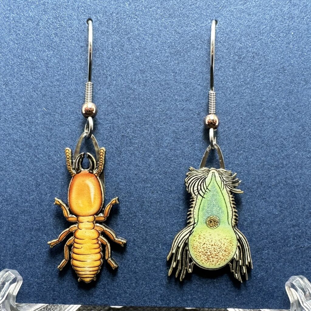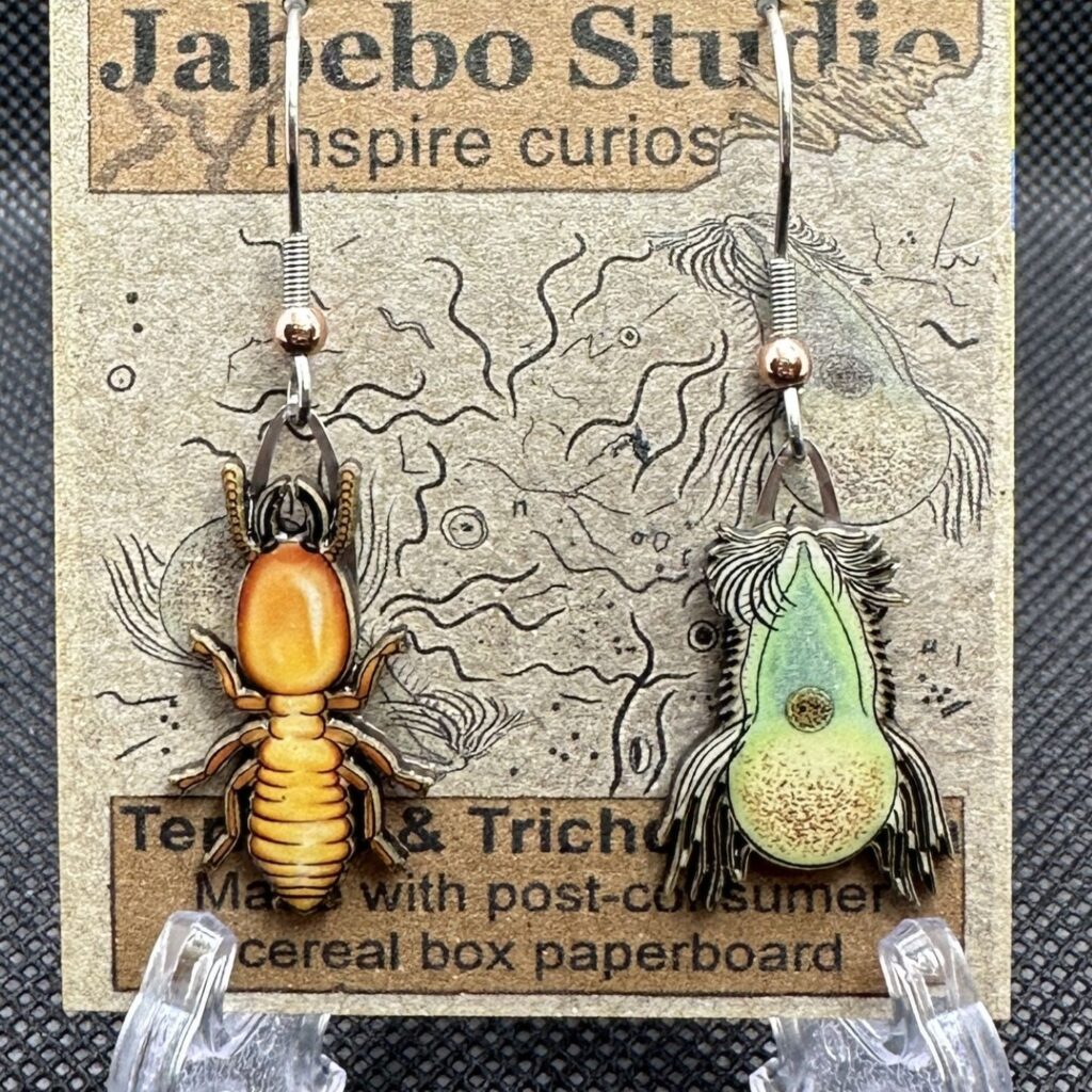 Termites are known for their unique ability to eat wood. It is the Trichonympha, a tiny protozoan, living inside the termites gut that break down the wood fragments into a digestible soup. A common biology class lab activity is to squash a termite and look for the microbes living in its gut.